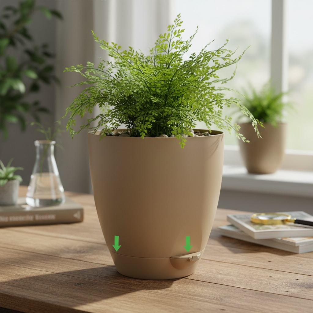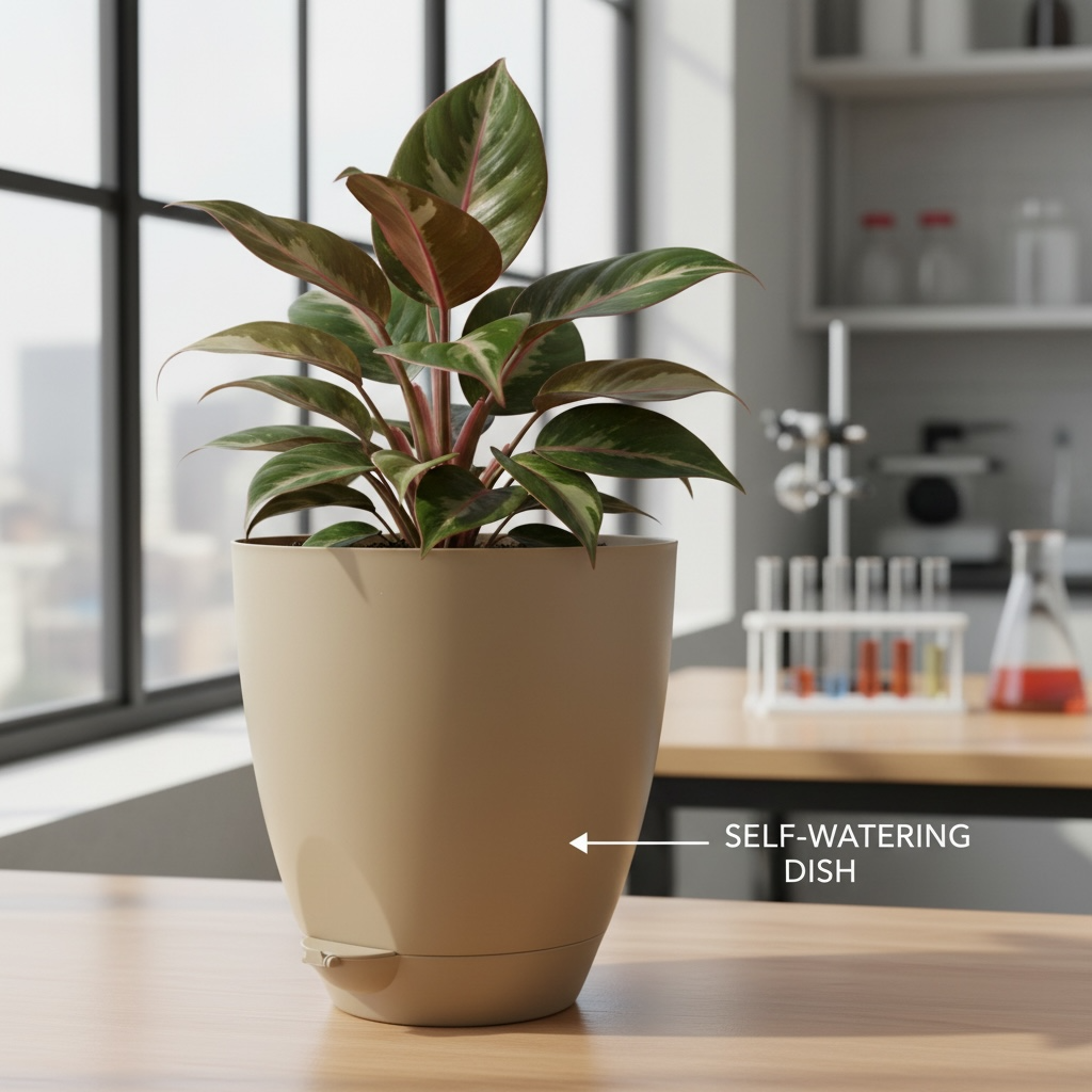 Self-Watering System: Integrated water reservoir at the base allows plants to absorb water as needed.