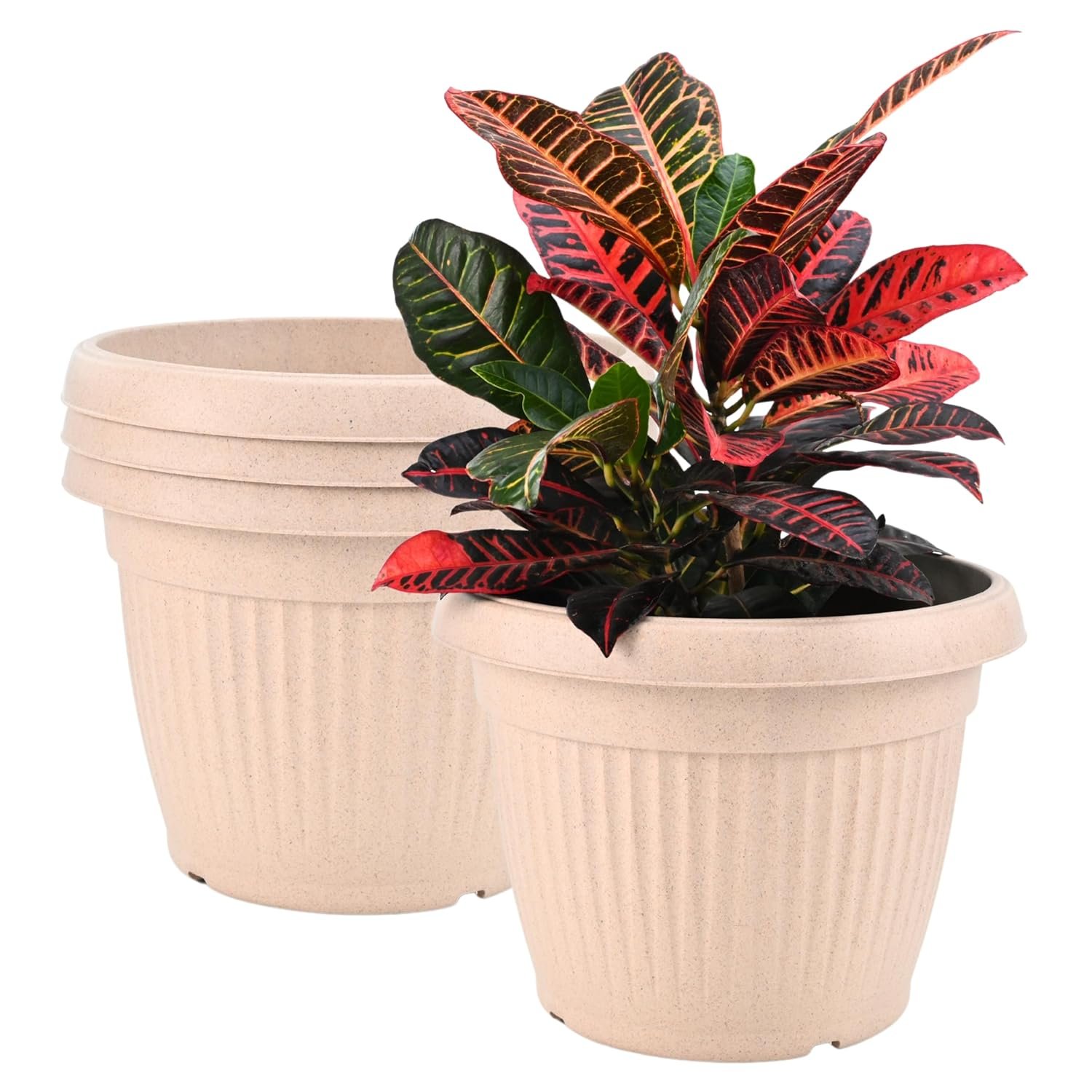 • VERSATILE- Modern natural textured planters with new age aesthetics and earthy shades are perfect for home, garden, and office décor. The perfect alternative to plastic pot and ceramic pots which can accommodate a variety of indoor and outdoor plants as flowering plants, succulent’s and for indoor air purifying plants