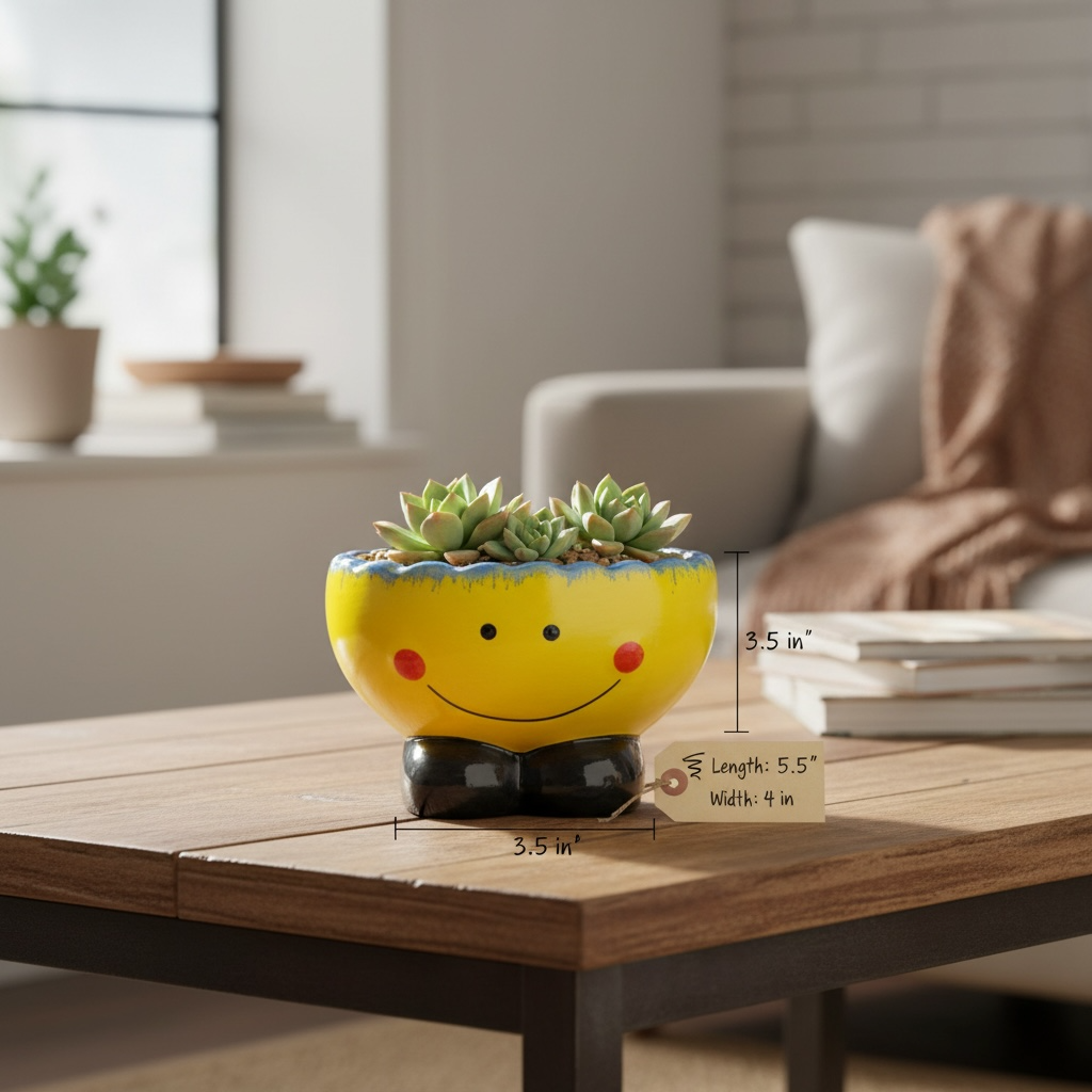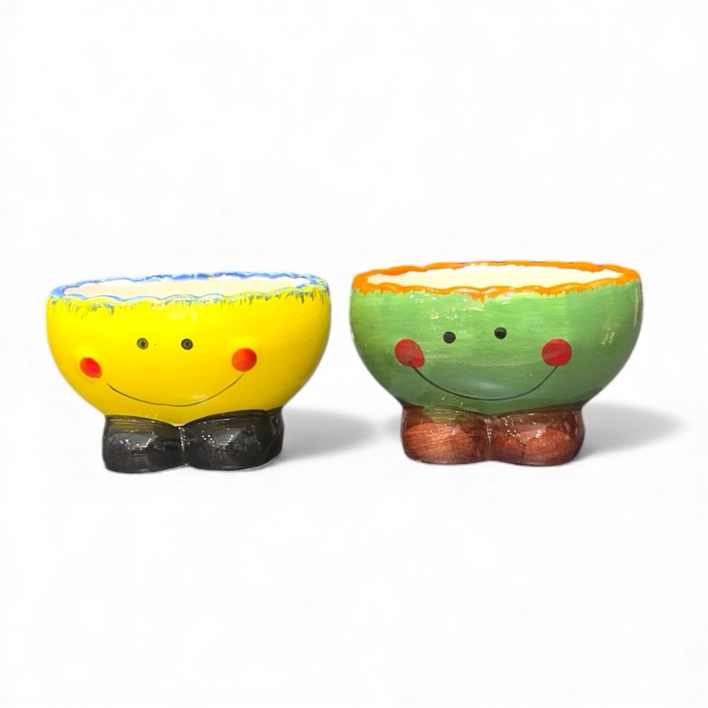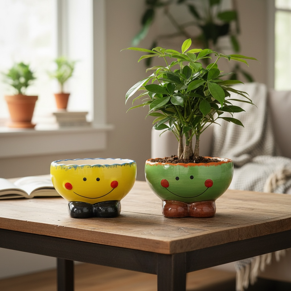 - DESIGN FEATURES: Adorable ceramic planter pots featuring charming smiley face expressions, available in lovely Green and Yellow colours