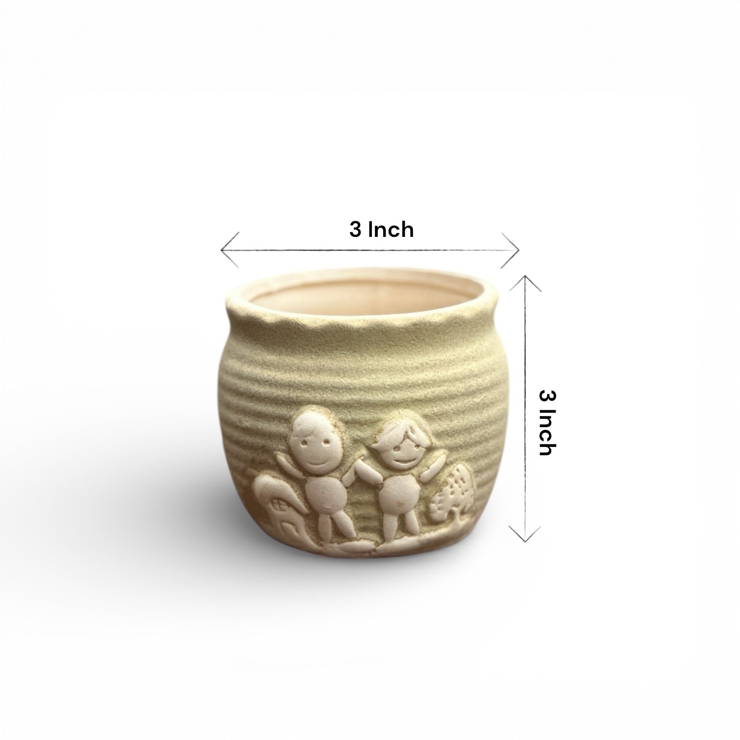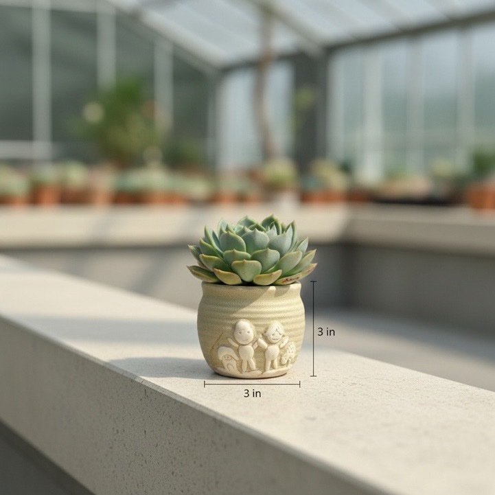 With a compact size of 3 inches (height × diameter), it is ideal for succulents, cactus, bonsai seedlings, or artificial plants. The textured finish and soft pastel tones blend beautifully with both modern and natural interiors.